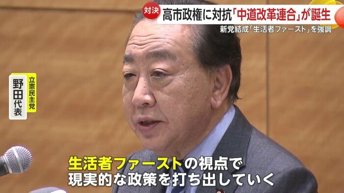 立憲民主党の野田代表は「『中道』は右にも左にも傾かずに、対立点はあるかもしれないが、熟議を通して解を見いだしていく基本的な姿勢。生活者ファーストの視点で現実的な政策を打ち出していく」と話す。