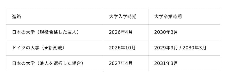 日本の受験システムで「浪人」を回避し、同級生と同年に大学生活をスタートさせるための大きな鍵が、ドイツの出願スケジュールにあります。