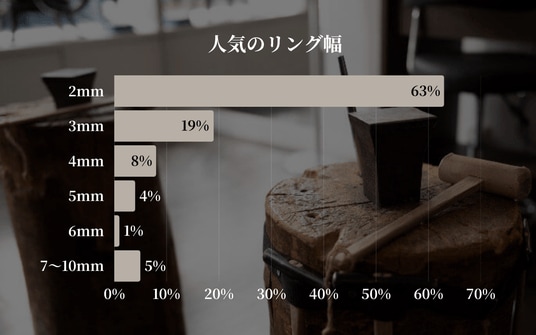 一方で、「7~10mm」の幅広リングも5%の一定数を維持しており、シンプルさを追求する層と、手作りならではの「存在感」を追求する層で、好みの二極化が見られるのも興味深い傾向です。