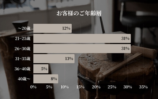 12月の来店者を分析した結果、「21~25歳」と「26~30歳」が共に31%を占め、20代のカップルが全体の6割以上(62%)にのぼる結果となりました。