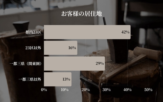 居住地別では「都内23区」が42%と最多ですが、注目すべきは「一都三県以外」の遠方からのお客様が13%と大幅に増加した点です。