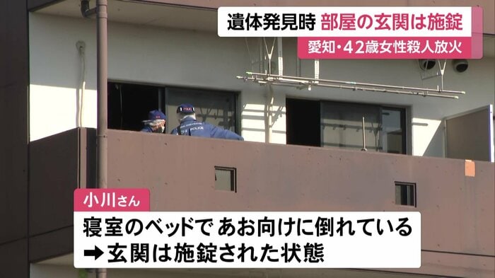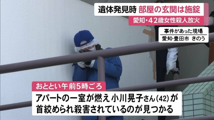 愛知県豊田市で17日、アパートの一室で女性の遺体が見つかった殺人・放火事件で、遺体発見時に現場の部屋の玄関は施錠されていたことが分かった。