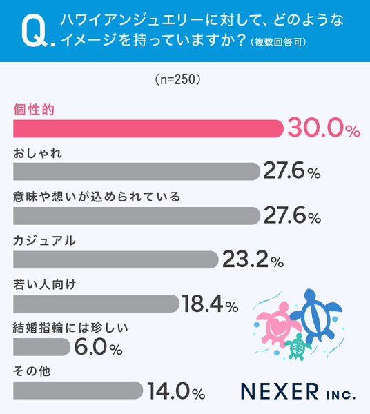 最後に、ハワイアンジュエリーに対してどのようなイメージを持っているかを調査しました。