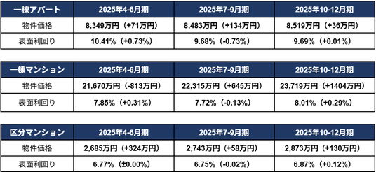 2025年10月~12月期 投資用不動産の市場動向