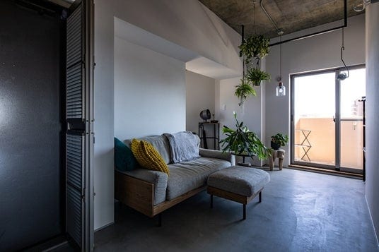 土間は、居住スペース確保のためマンションでは狭くつくられることが多い玄関を拡張してつくります。土足のまま利用でき、汚れが気になりにくいため、ベビーカーやアウトドア用品を置いたり、外と内の間のような使い方ができます。