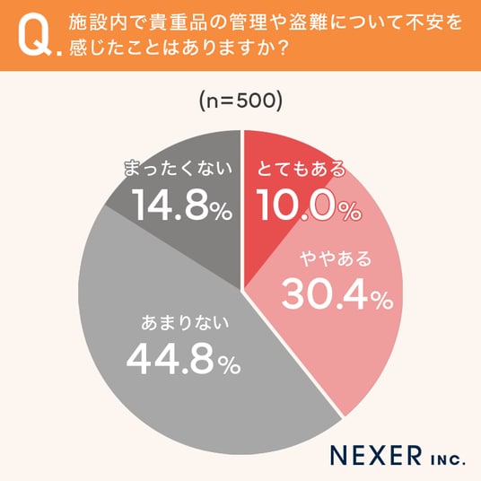 続いて、施設内で貴重品の管理や盗難について不安を感じたことがあるかを聞きました。