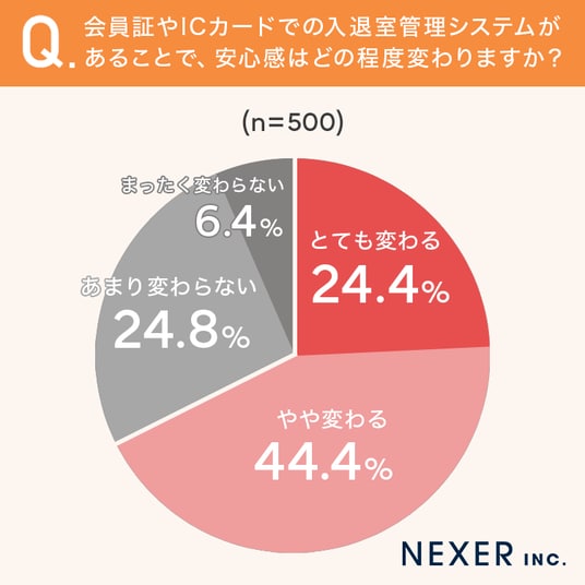 次に、会員証やICカードでの入退室管理システムがあることで、安心感はどの程度変わるかを聞いてみました。