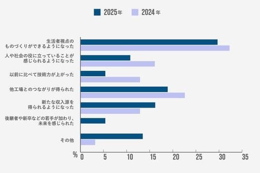 今回の調査では、「生活者視点のものづくりができるようになった」(29.7%)が最も多く、前年と同様にファクトリエとの取り組みが商品づくりの視点変化につながっていることが示されました。