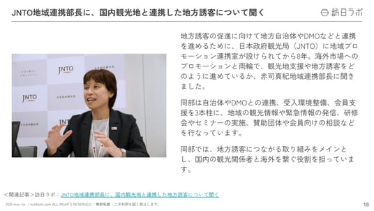- JNTO地域連携部長に、国内観光地と連携した地方誘客について聞く