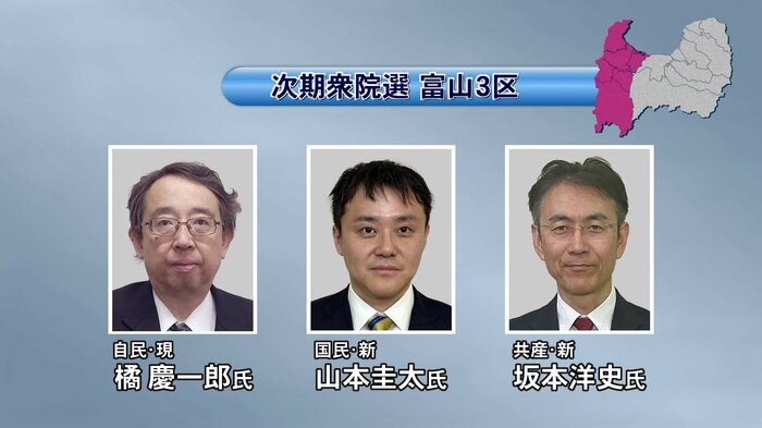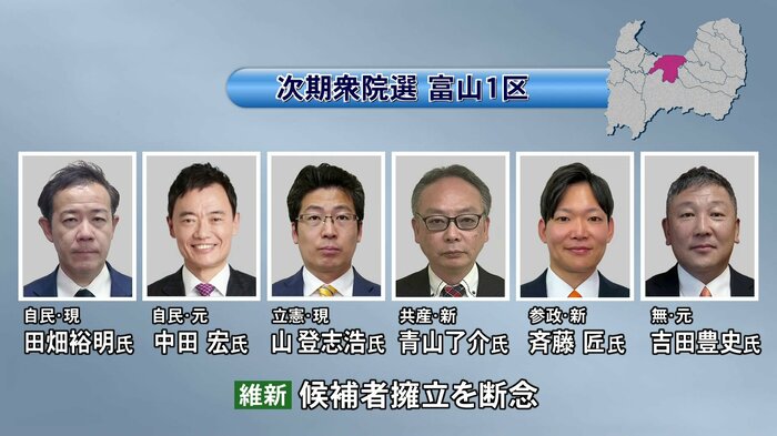 旧富山市をエリアとする富山1区は、現職と元職、それに新人の6人が出馬する見通しです。
