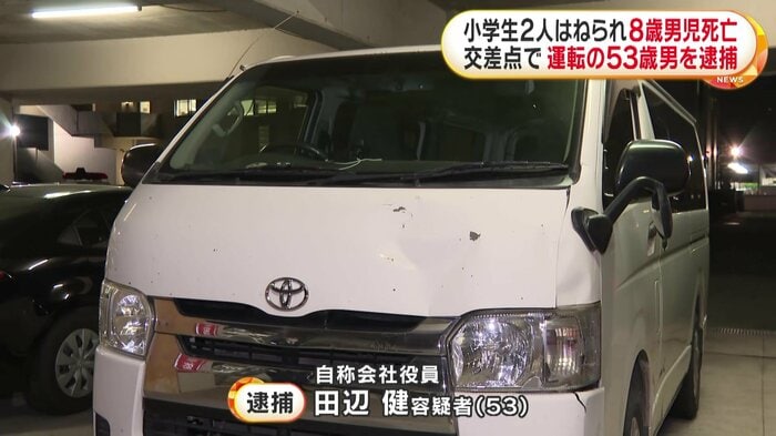 警察は、車を運転していた自称会社役員・田辺健容疑者(53)を過失運転致傷の疑いで現行犯逮捕しました。