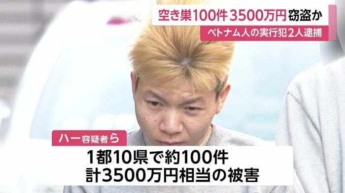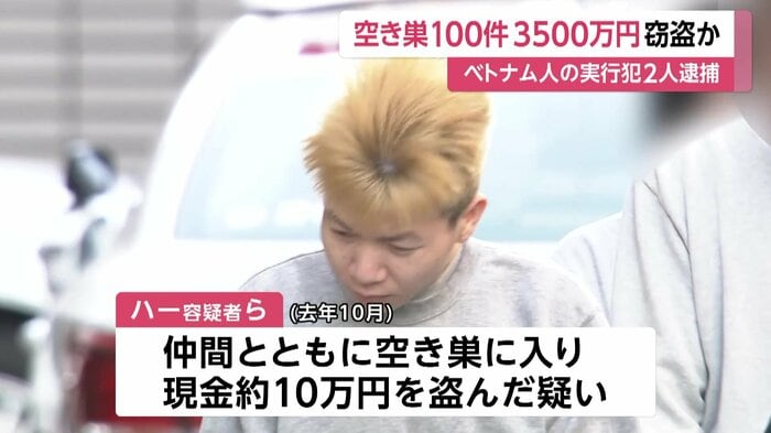 100件ほど空き巣に入り、現金など約3500万円相当を盗んだとみられる窃盗グループの実行犯2人が逮捕された。