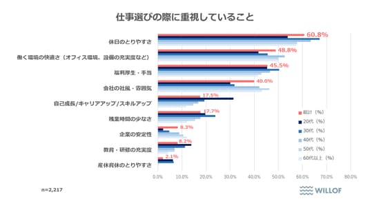 2. 仕事選びで重視すること1位は「休日の取りやすさ」