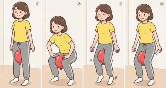 軽く内ももを締めることで、骨盤底筋群が活性化し、尿トラブル予防につながります。