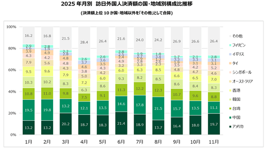こうした傾向は2025年4月の大阪・関西万博開幕以降、さらに加速しており、日本に訪れる観光客の構成の変化が進んだ一年となりました。