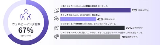 テーマ1.ウェルビーイング指数:グローバル67%(前回調査±0) 日本45%(前回調査+2)