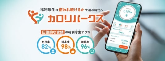 「カロリパークス」は、スマートフォンアプリを活用した福利厚生サービスです。従業員の健康増進をサポートする機能と、日々の生活を豊かにするサービスを組み合わせることで、企業の健康経営をサポート、従業員の満足度と定着率向上に貢献します。導入企業では、利用率82%・満足度98%・継続率96%(※4)という高い実績を誇り「導入しただけで終わらせない、“届く福利厚生”」として注目を集めています。