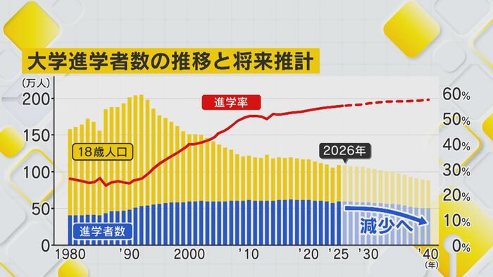 大学入学共通テストが終わり、受験シーズン本番となる中、全国の大学や短大は、少子化が更に進み、大学への進学者数が減少する『2026年問題』に直面している。学生が集まらず経営状況が悪化する中、生き残りをかけ苦悩する大学の現状を取材した。
