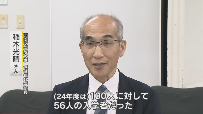 「志願者数の減少、ひいては入学者数の減少と、とても厳しい状況だなと認識しています。2024年度は、100名の募集に対して56名の入学者でした」と定員割れとなった実情について『西南女学院大学』保健福祉学部長・稲木光晴教授が語る。