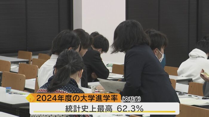 文科省によると、これまで少子化の中でも大学進学率は、増加傾向にあり、2024年度は、統計史上最高の62.3%を記録した。