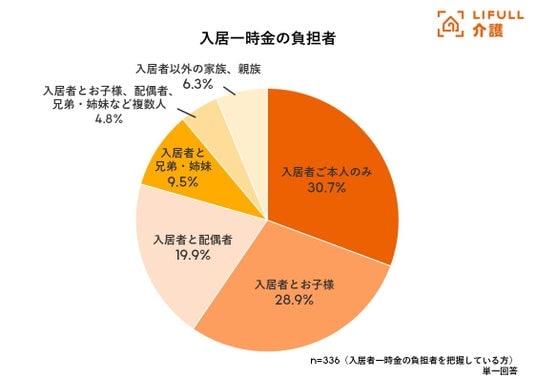 入居一時金負担者は「入居者本人+家族・親族」が6割。「本人のみ」は3割に止まる