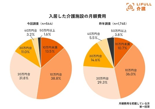 一方で、今回の調査では高価格帯にあたる30万円以上は15.8%(30万円台:11.0%、40万円台:3.2%、50万円以上:1.6%)で前回調査の23.9%からやや微減となりました。経済的な負担から、比較的低価格の施設が選ばれている可能性があります。