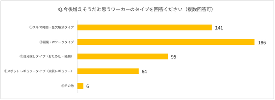 厚生労働省による副業解禁の流れが後押ししているほか、柔軟な勤務形態の提案を受け入れる企業が増えたことも、副業・Wワークタイプの増加を促進すると見られています。