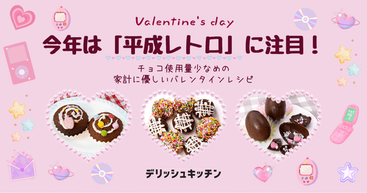 株式会社エブリー(本社:東京都港区、代表取締役:吉田 大成)が運営する日本最大級のレシピ動画メディア『デリッシュキッチン』は、バレンタインの時期に合わせ、今年流行しそうな「平成レトロ」レシピを公開しました。近年、チョコレートの価格が高騰していることを受け、お手頃な食材を組み合わせることで、家計に優しく、「懐かしくてエモい」「ダサくて逆にかわいい」といった平成の雰囲気を再現したレシピを紹介します。