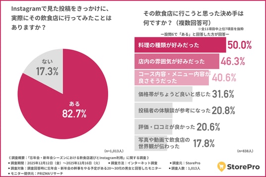 Instagramの投稿が飲食店選びと来店行動に直結!選んだ決め手と、実際に感じた“ギャップ”とは?