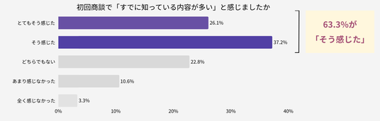 「とてもそう感じた」26.1%、「そう感じた」37.2%と、合計63.3%が営業説明の内容を「既知」と感じています。