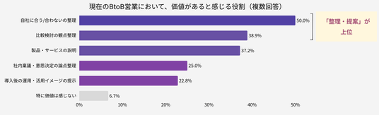現在のBtoB営業において、価値があると感じる役割を確認しました。