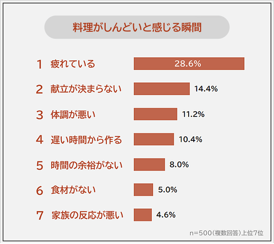 ・料理がしんどいと感じる瞬間1位は「疲れているとき」