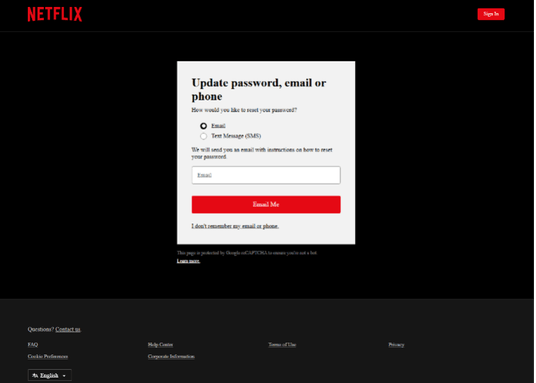 Netflix:アカウント回復を囮として利用