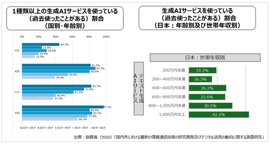 5. 日本は生成AI利用率が低い一方、高年収層は利用率が高い