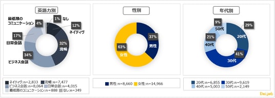 【人数】23,626人(男性・8,660人 女性・14,966人)【方法】Daijob.com登録者データから抽出
