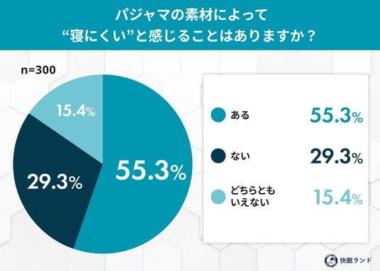 - パジャマの素材が原因で半数以上が「寝にくい」と感じたことがあると回答