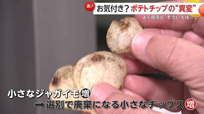 しかし小さなジャガイモが増えたことで、選別の工程で廃棄になってしまう小さなチップスが増えたという。