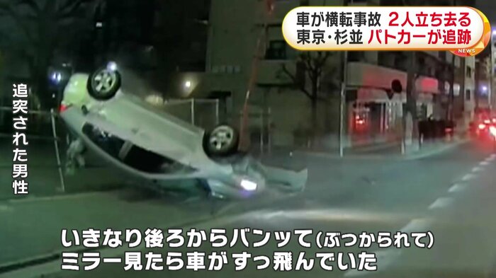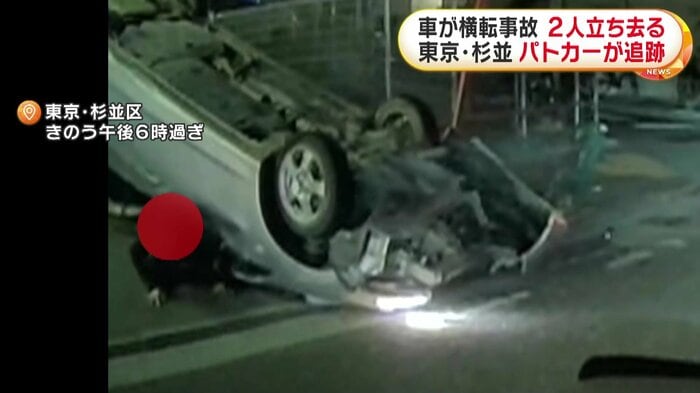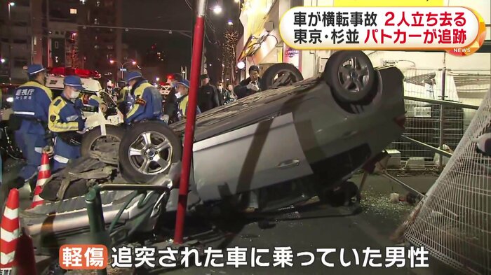 東京・杉並区で20日夜、パトカーの追跡を受けていた車が横転事故を起こした。