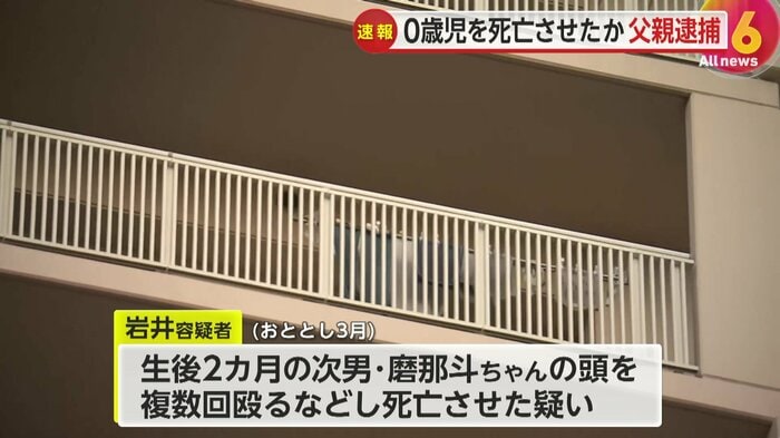 岩井容疑者は2024年3月、自宅で生後2カ月の次男・磨那斗ちゃんの頭を複数回殴るなどして死亡させた疑いが持たれている。