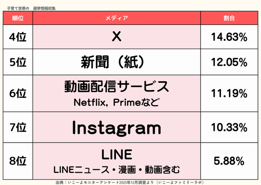 YouTubeやXも上位に入っていることから、公式情報(TV・ニュース)で概要を把握しつつ、SNSで個別の候補者の「本音」や「評判」を補完する「ハイブリッド型の情報収集」の動きが考えられます。