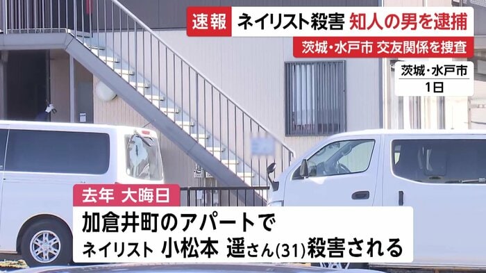 この事件は2025年の大晦日、水戸市加倉井町のアパートで、この部屋に住むネイリストの小松本遥さん(31)が殺害されたもの。