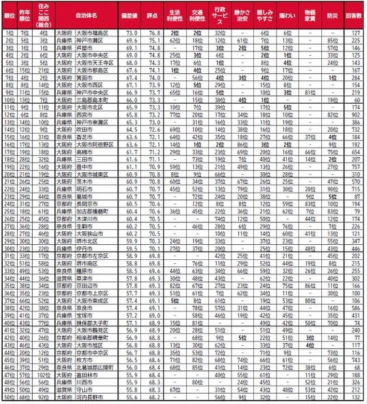 ※住みここ関西版(総合)の順位は、2025年7月9日に発表した「街の住みここちランキング2025<関西版>」の順位を表記しています。