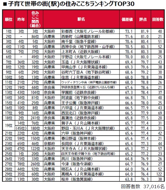 子育て世帯の街(駅)の住みここちランキング2025<関西版>1~50位