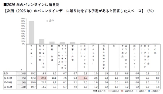 バレンタインデーの贈り物は「チョコレート一強」。約9割と圧倒的支持一方、若年層ほど「チョコレート以外の食べ物」を選ぶ動きも