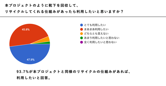 プロジェクト参加者の 93.7%が、使用済み靴下の回収・再資源化を「継続利用したい」と回答