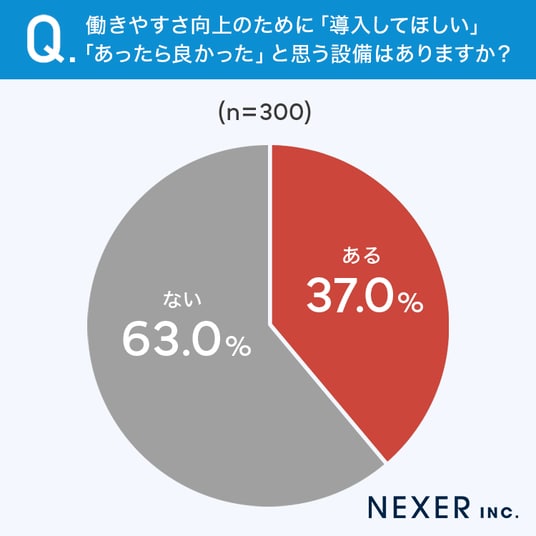 ■37.0%が、働きやすさ向上のために「導入してほしい設備がある」と回答