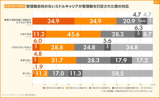 4.業務で成長を感じる機会があるミドルキャリアほど、管理職を打診されたら「承諾」割合高い