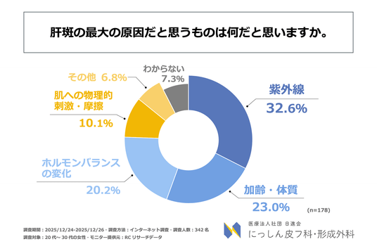 肝斑を知っている20代~30代の女性の多くが、その最大の原因は「紫外線」だと考えている