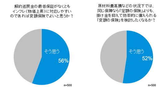 また生命保険についても、半数以上の経営者がインフレに対応しやすい変額型の特長を肯定的に評価しており、備えの選択肢が広がっています。