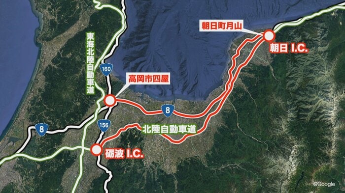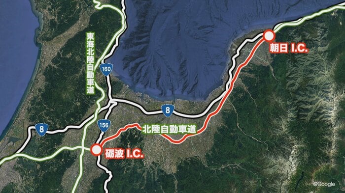21日午後6時から通行止めが始まったのは、北陸自動車道の砺波ICと朝日ICの間です。